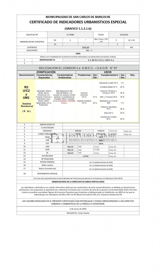 Se adjunta certificado de indicadores urbanísticos.