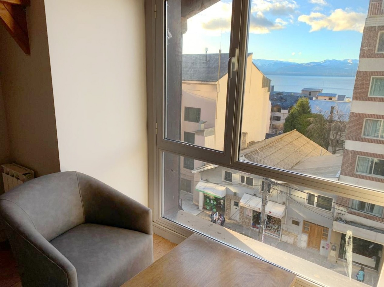 Se trata de un cómodo monoambiente con vista parcial al Lago Nahuel Huapi -
